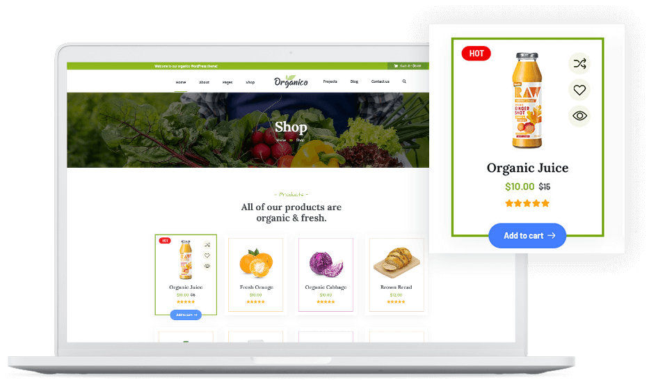 09 Awesome Demos MAIN Home 01 Home 02 Home 03 Home 04 Home 05 Home 06 New Home 07 New Home 08 New Home 09 Theme Features 1 Click Demo Install This works by importing wordpress content, widgets and theme options. Elementor By Elementor, the developers can find the easy way to work on theme. Redux Framework Redux is a simple, truly extensible options framework for WordPress Theme. Contact Form 7 The extension can be of great help to embrace fast online payment facility. Slider Revolution It includes Revolution Slider for easy slide building. $69 value FREE! SEO Friendly Theme perfectly supports search engine algorithms. Fully SEO Friendly. Great Support! Get a high quality support service with us, Submit a ticket to our form. Fully Responsive Fully responsive, retina ready created for all types of devices. WPML compatible WPML allows running fully multilingual websites with WP RTL Language Support No matter if you’re building a website with right to left language. WooCommerce Ready You can easily create and manage your online store with the WooCommerce plugin. Lifetime Free Updates You will get free lifetime updates. Updates may contain improvements. Ready to build your store today! This theme optimized for creating WooCommerce online stores that provides a super-fast interface for the ultimate user experience. Go Product page Build your organic store with Organio Purchase now. Only $39! Purchase Now © 2021 Organio – CaseThemes. All rights reserved.
